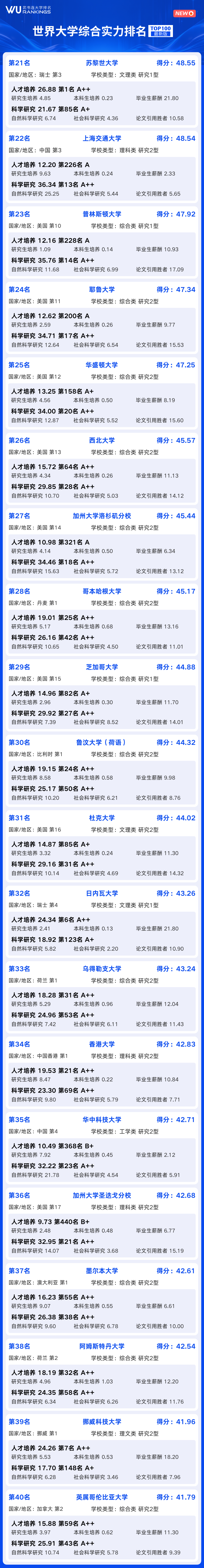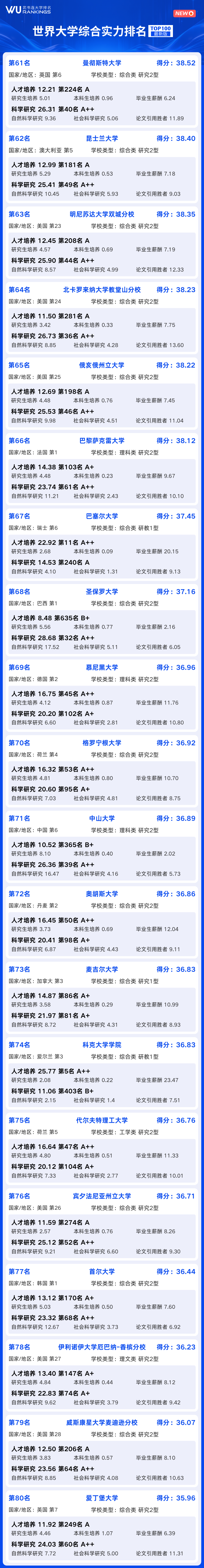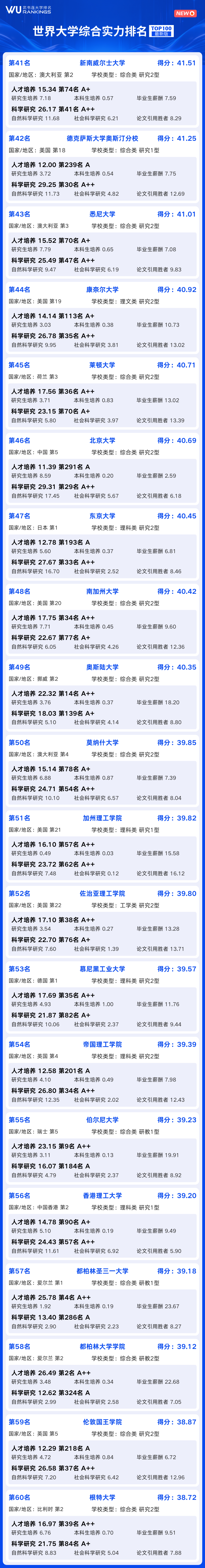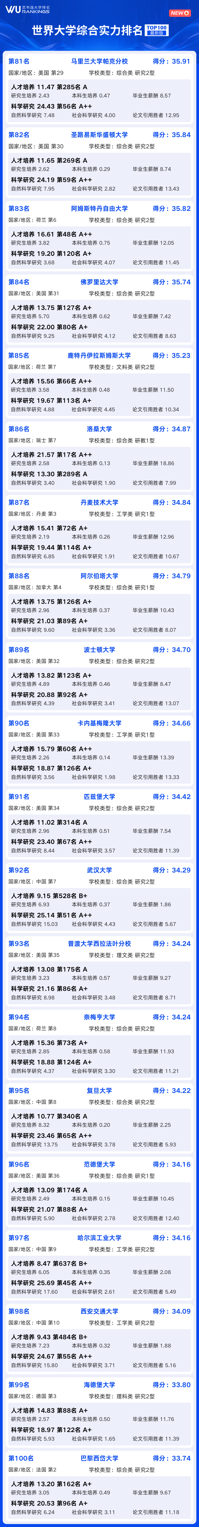 世界大学综合实力100强