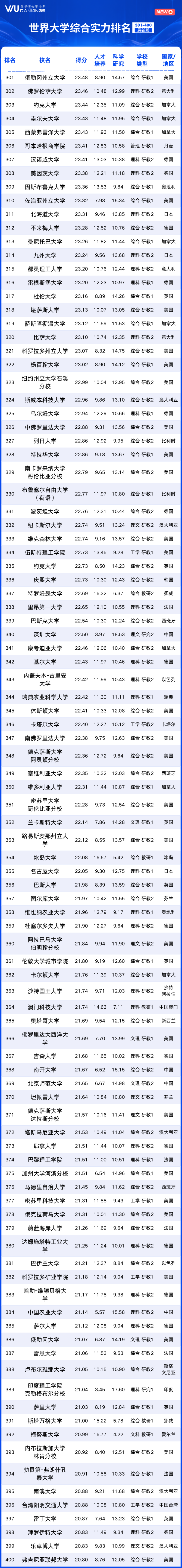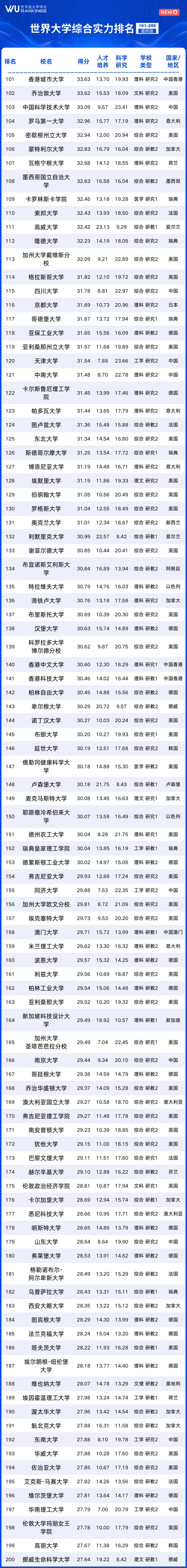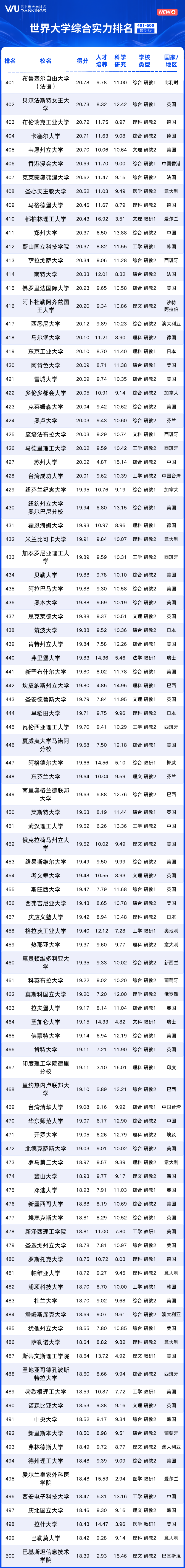 世界大学综合实力101-500名