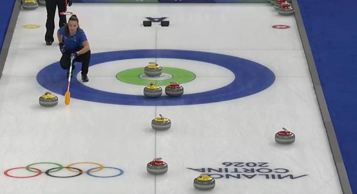 这时中国队形势仍然严峻,第10局想要在东道主手里偷分难于上天。本场比赛到目前为止,都是后手得分,谁也没能先手偷分,而且意大利队只要后手把中国队所有的壶都清掉,就稳赢了,她们擅长撞击。